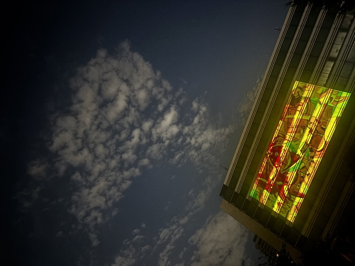 高いビルに投影されてるから、寝っ転がっててもちょうどよく観える。