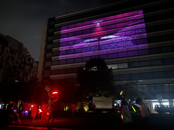 そしてアニメが投影されるビルは、東映アニメーション本社が入っているビルなんです。なんとも趣深い。
