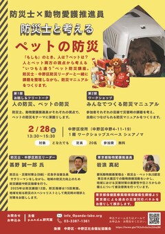 - 2月28日(土曜)p.a.n.d.a.研究室 『防災士と考える人とペットの防災 ~みんなで作るペット防災マニュアル~ 』