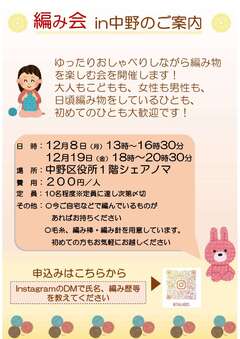 ゆったりおしゃべりしながら編み物を楽しむ会を開催します!大人もこどもも、女性も男性も日頃編みものをしているひとも、初めてのひとも大歓迎です!