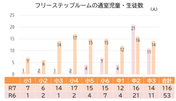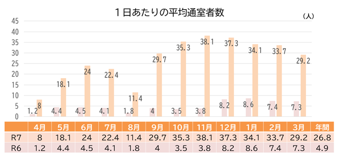 1日の通室者数もR6からR7で増加しています。子どもたちの利用頻度が上がっていることが分かります。