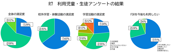 令和7年度、多くの方に満足いただきました。今後もよりよいFSRとなるように運営を行っていきます。