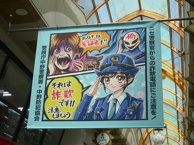 中川翔子さん作成の防犯イラストは、中野サンモール商店街振興組合協力のもと、同商店街に10月26日まで公開されております。