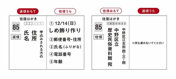 往復はがきに申込み事項を記入の上、当館へ郵送してください。(申込み期間内到着有効)