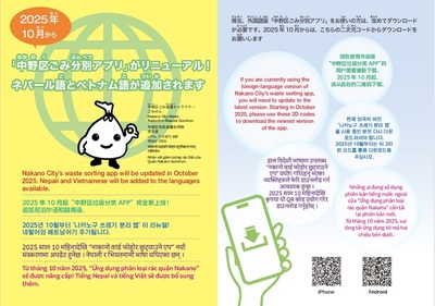 中野区では、ごみの収集日や分別方法など、ごみに関する様々な情報を身近なスマートフォン等で確認できる「ごみ分別アプリ」を配信しています。無料でダウンロードができますので、ぜひ、ごみの分別や資源化のためにご利用いただき、より一層のごみ減量と排出マナー向上にご協力ください。