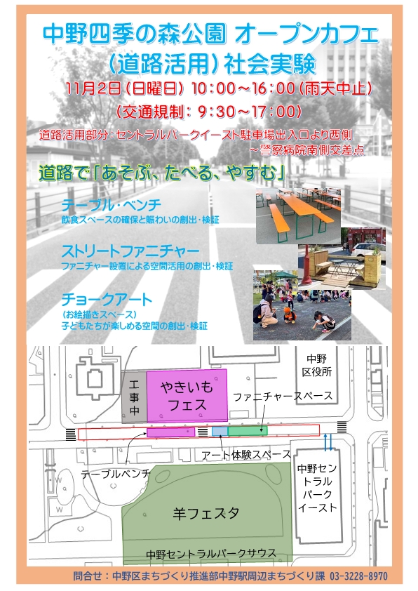 中野四季の森公園 オープンカフェ(道路活用)社会実験のお知らせ