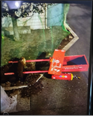 最近、いたずらなどによる街頭消火器の盗難および破損が多発しています。こうした行為は犯罪です。区では悪質な事案について警察に被害届を提出しています。