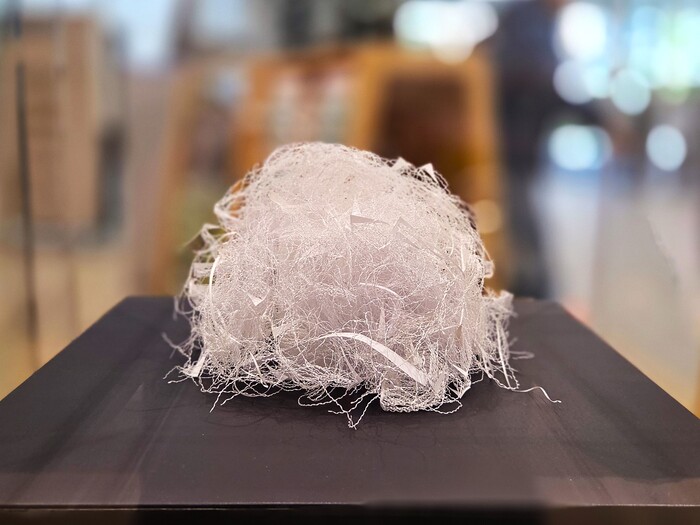 広告や展覧会のチラシなどの紙を用い、1mmにも満たない間隔で、鯨のひげのように正確かつリズミカルに紙を切っていく。