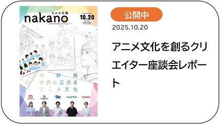 こうした状況を踏まえ、中野区は、2025年5月に「アニメでつながる中野実行委員会」を設立し、アニメーション産業等が中野の魅力として区内外でさらに認識され、来街者による地域経済の活性化や区民のシビックプライド醸成につながるための取組を一層進めています。