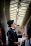 バルーンアート、ジャグリング、テーブルクロス引きなどを使ったコメディー大道芸。
