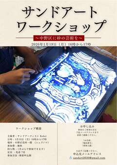 - 1月19日(月曜)サンドアーティスト Kohei 『Koheiのサンドアート・ワークショップ体験~中野区に砂の芸術を~ 』