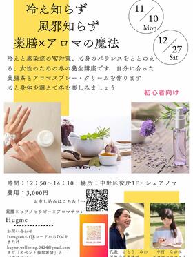 - 11月10日(月曜)Hugme さとうみわ『冷え知らず・風邪知らず・薬膳×アロマの魔法』