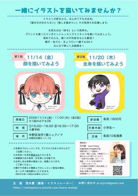 - 11月14日(金曜)茂木薫『好きから始めるイラスト教室「ミニキャラを描いてみよう」』