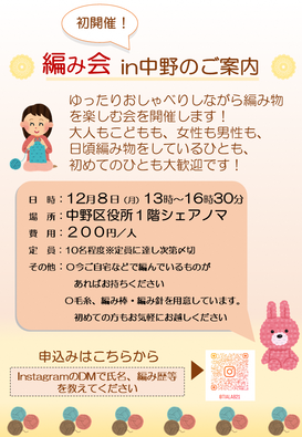 - 12月8日(月曜)増田園子『編み会in中野』