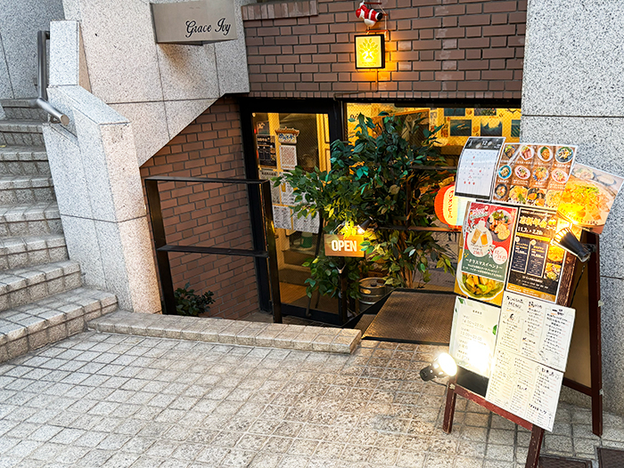 入口は半地下。どんなお店なのかドキドキ!