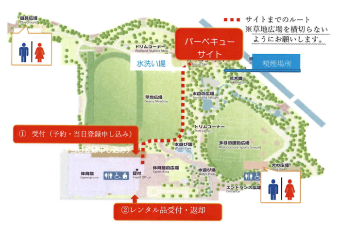 バーベキューサイトまでの地図(バーベキューサイト利用案内より引用)