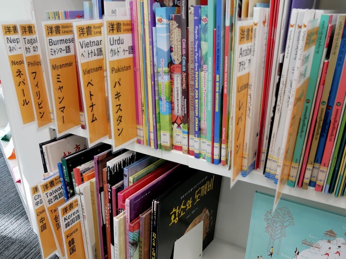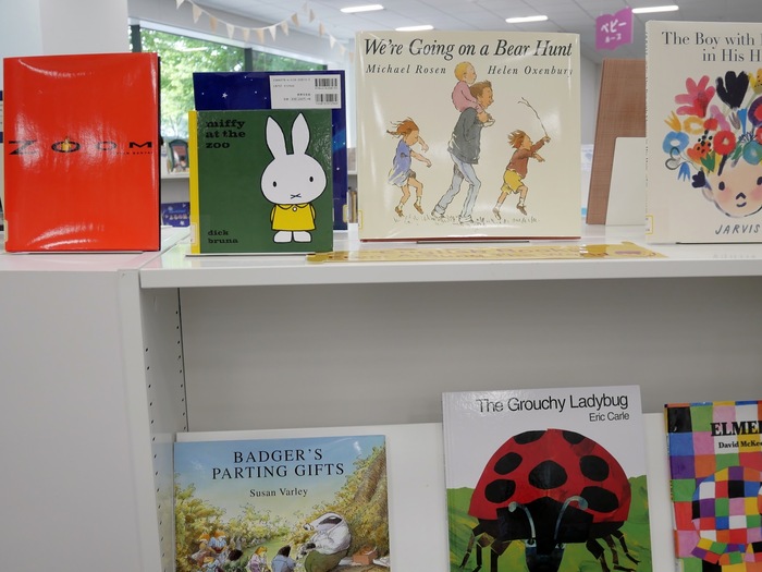 「なかのループ」「ベビーループ」「せかいループ」「まなびループ」のゾーンごとに絵本が並んでおり、子どもの頃に読んだ名作や外国語で書かれた作品などさまざまな絵本があります。