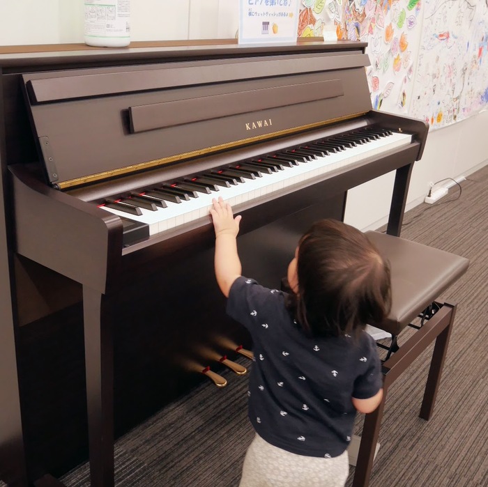 電子ピアノが置いてあり、誰でも自由に弾くことができます。この日は、小学生の女の子が素敵な曲を弾いていて、次第に人が集まってミニコンサートとなりました。