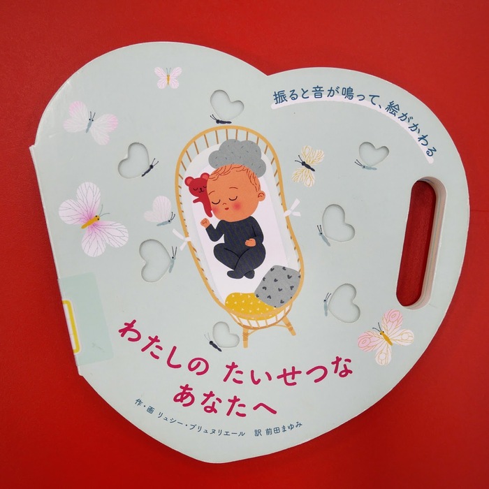 持ち手を握って絵本をふると優しい音が鳴るしかけ絵本。わが子もずっと音を鳴らして楽しんでいました。