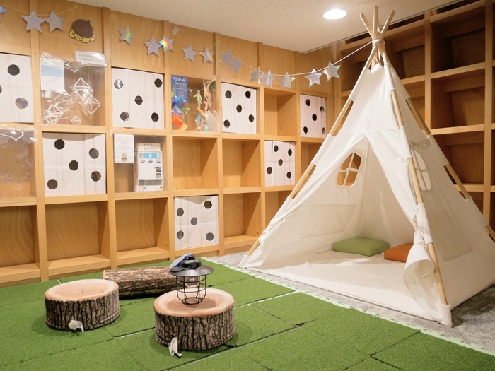 テントの中で読書をしたら、本の世界に没入できそうでとってもロマンチックです。こちらは、平日午後1時から6時まで 未就学児から小学生まで入れます。
