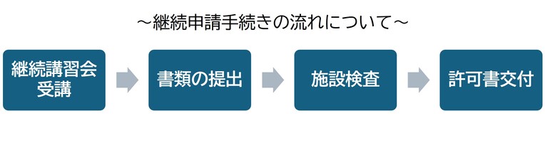 ※申請から許可までは数日かかります。営業許可期限満了日に間に合うよう、余裕をもって申請してください。