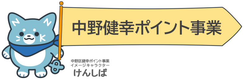 中野区健幸ポイント事業イメージキャラクターの「けんしば」と一緒に、歩いて、測って、参加して、ポイントをためて健幸づくりに取り組みましょう!