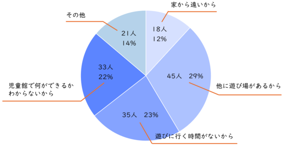 「他に遊び場があるから」と回答した方が29%で最も多く、続いて23%の方が「遊びに行く時間がないから」という結果でした。
