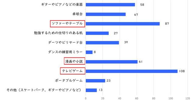 最も多かったのが「TVゲーム」で108件、続いて「ソファーやテーブル」が87件、「漫画や小説」が61件という結果となりました。