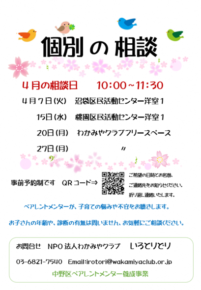 ペアレントメンターによる相談会開催のお知らせ