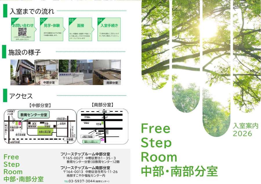 「フリーステップルーム中部・南部分室リーフレット」(PDF形式:1,577KB)をご覧ください。
