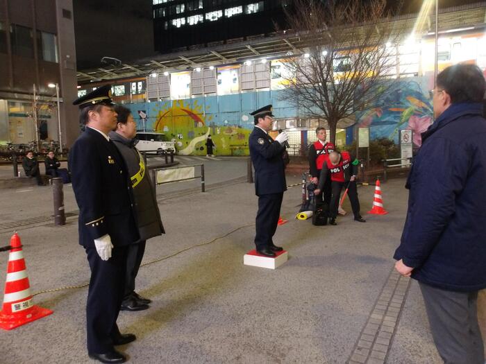 令和7年12月18日(木曜日)、年末で賑わう中野駅北口の繁華街で夜間合同パトロールを行いました。