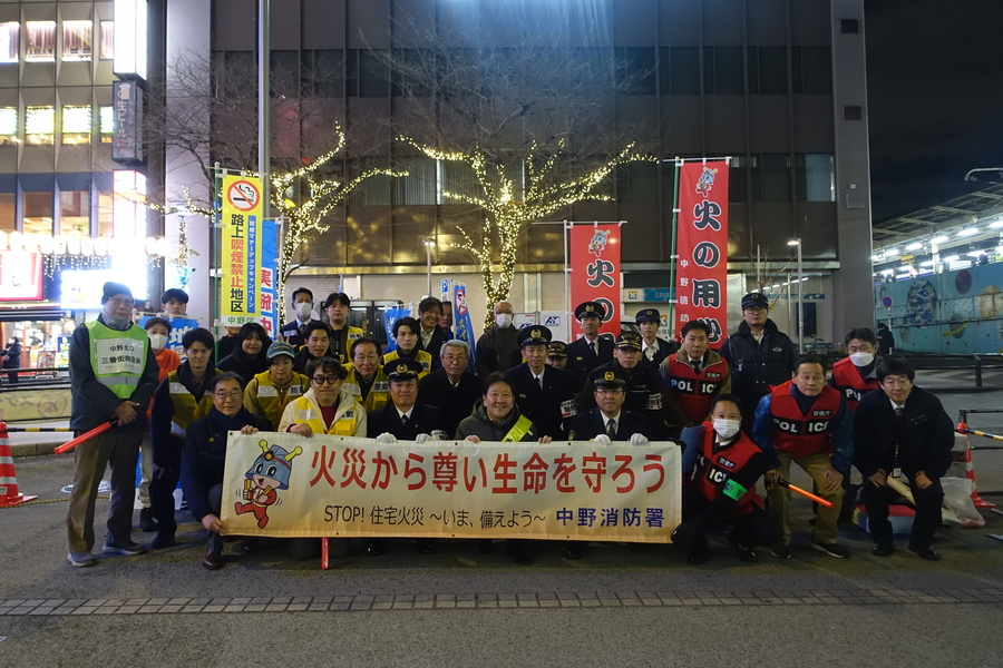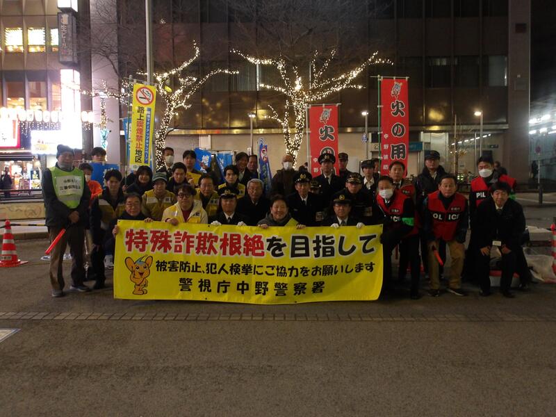 当日は、中野警察署や中野消防署、商店街の皆さんや防犯ボランティアの皆さんが集まり、街頭犯罪や悪質な客引きの防止、路上喫煙防止、火災の予防などを目的に繁華街を巡回しました。