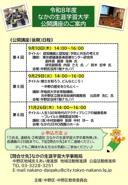 メールアドレス:nakano-daigaku@city.tokyo-nakano.lg.jp