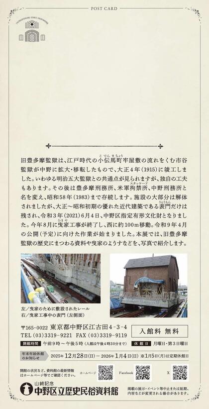 本展では、旧豊多摩監獄の歴史にまつわる資料や曳家のようすなどを、写真で紹介します。