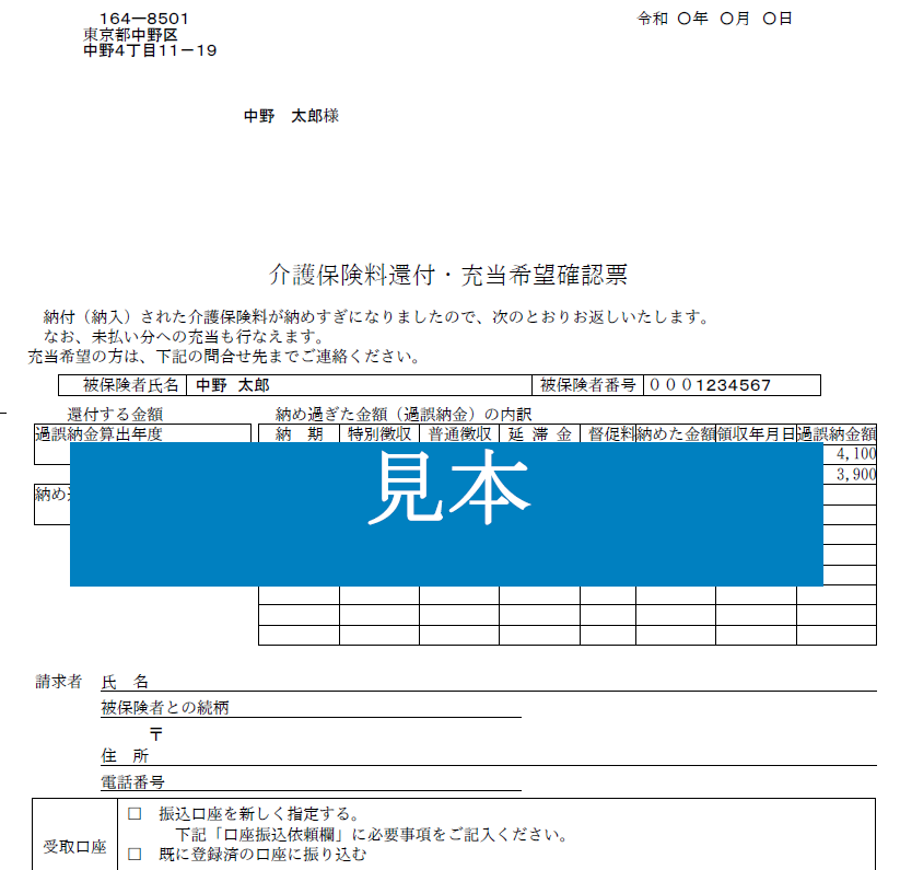 ・介護保険料還付請求書兼口座振替依頼書、または介護保険料還付・充当希望確認票