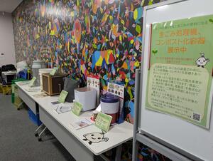 「古着リユース」も大盛況で、来場者が掘り出しものを探しながらリユースの魅力に触れていました。同ブースの「生ごみ処理機・コンポスト化容器の展示」では、パンフレットを手に実物を触ってじっくり見ている方もいました。