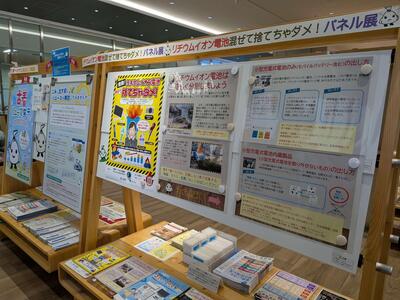 また、リチウムイオン電池の適正排出に関する啓発パネル展も開催しています。