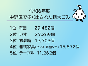 なお、区で粗大ごみとして最も多い布団は、布団販売店などでリサイクル回収を行っている場合もあります。