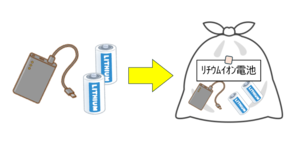 他のごみとは別の袋に入れ、中身が何か分かるように「リチウムイオン電池」「充電式電池」などと表記してお出しください。