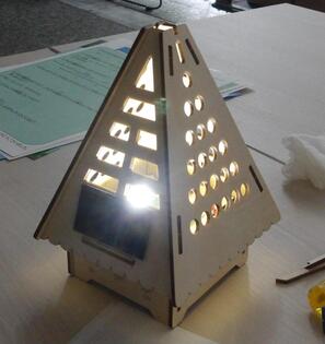 講義を通して、再生可能エネルギーやエネルギーの創(つくる)・蓄(ためる)・省(かしこく使う)について、学びました。その後、ソーラーパネル、蓄電池、LEDの機能がついた次世代エネルギーキットを使って、ソーラーハウスを工作しました。