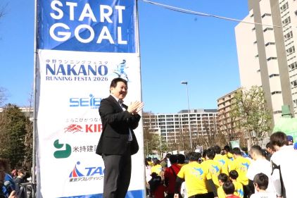 中野四季の森公園で開催された中野ランニングフェスタ2026の開会式に参加し、挨拶をしました。